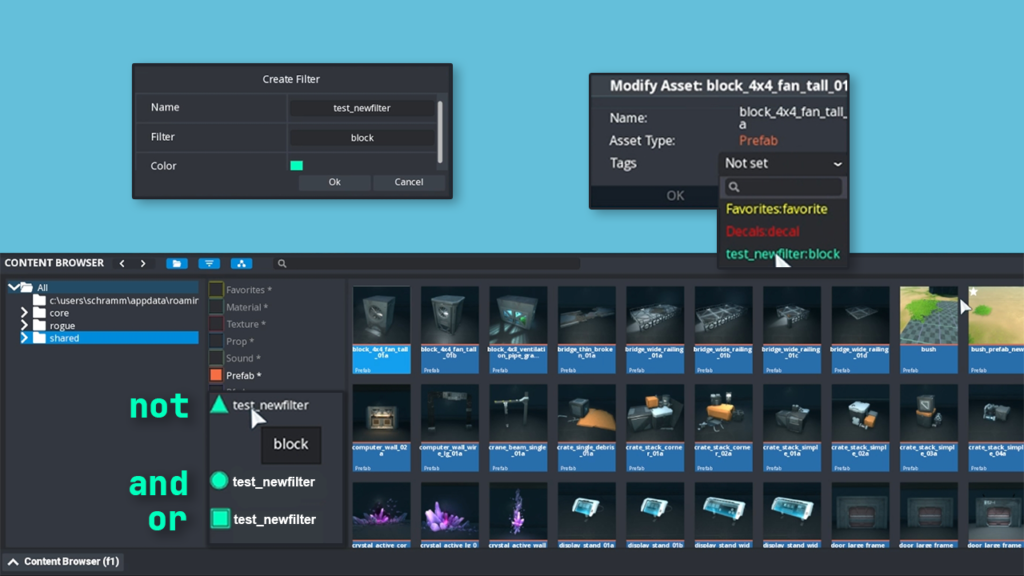 Because everything now had a corresponding .asset file, renaming, tagging, instanced material and much more was possible.