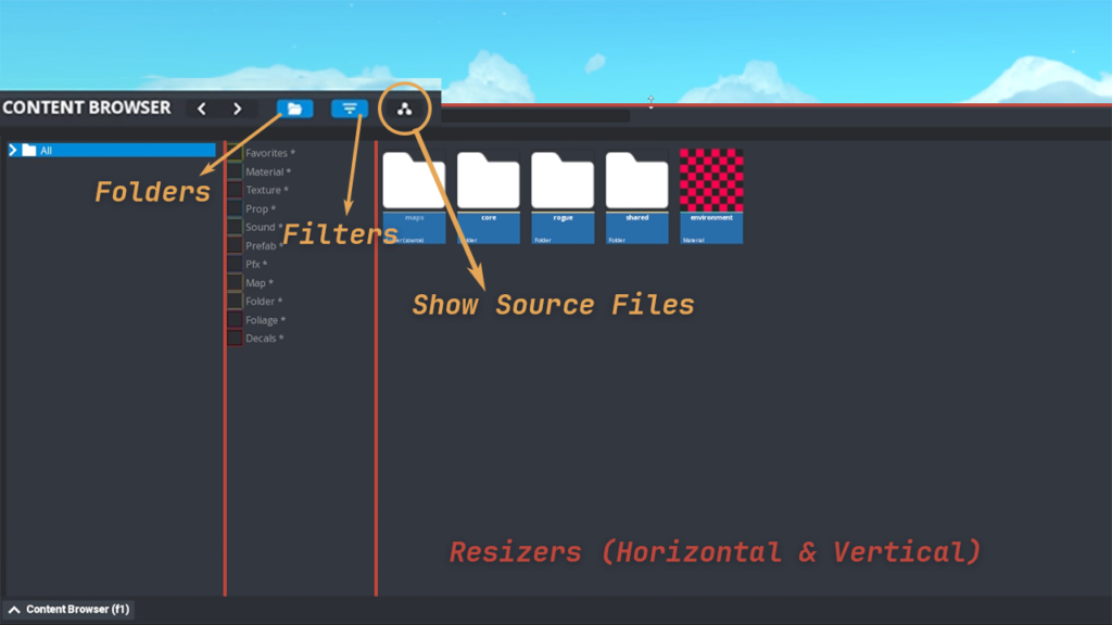 The content browser was completely remade for scalability and modding support. I redesigned the asset panel to allow dynamic resizing both horizontally and vertically, using a parent-child system similar to Unity/Unreal. This system enables flexible panel layouts and is crucial for future feature expansion.